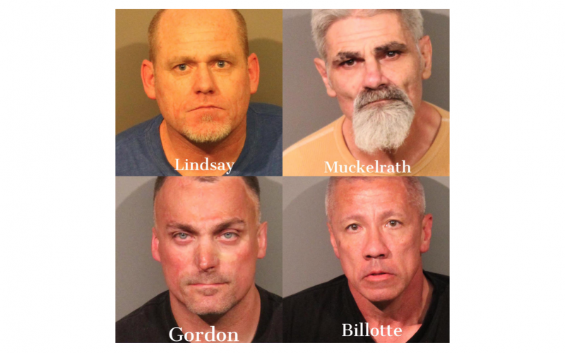 As the deputy tried to contact Lindsay, he took off and led the deputy on a foot chase. The deputy caught up to Lindsay and subsequently detained him. Upon further investigation, the deputies were led to a nearby property where they found more stolen items, including three firearms inside Lindsay’s vehicle, which belonged to the vacant residence where Lindsay was found. Deputies contacted three other men at the second property; 45-year old Michael Gordon, 58-year old James Muckelrath and 53-year old Joseph Billotte.