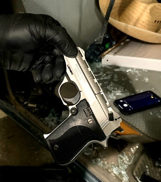 On June 7th, the Multi-Agency Gang Enforcement Consortium (MAGEC) served a search warrant at the suspect’s home. Two handguns were confiscated, one confirmed stolen and the other with serial numbers removed.
