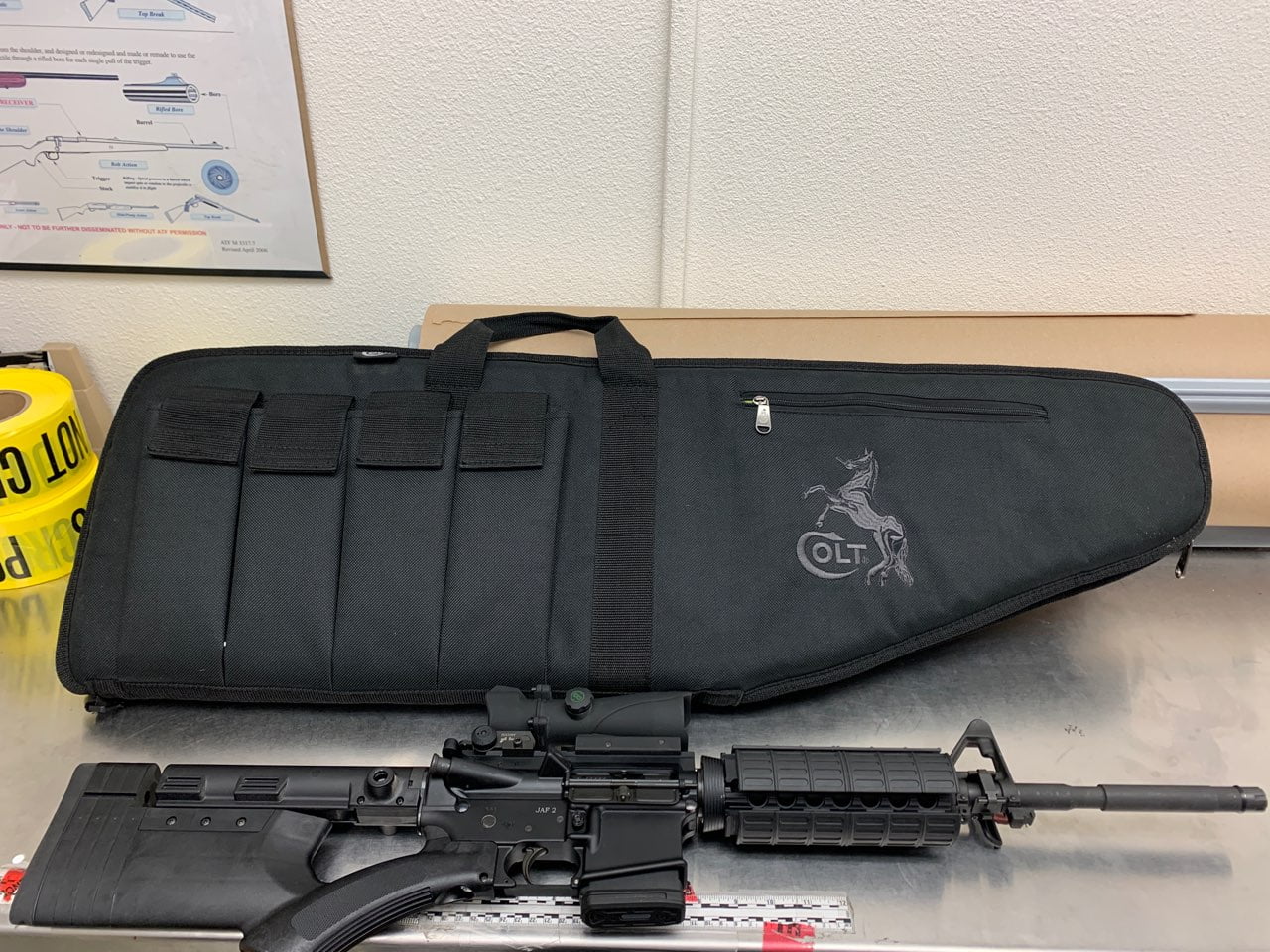 Fuentes is a previously convicted felon who is prohibited from possessing a firearm. A search warrant was served at Fuentes’ home where a second stolen AR-15 was found. Fuentes has also been charged in the theft of two other firearms.