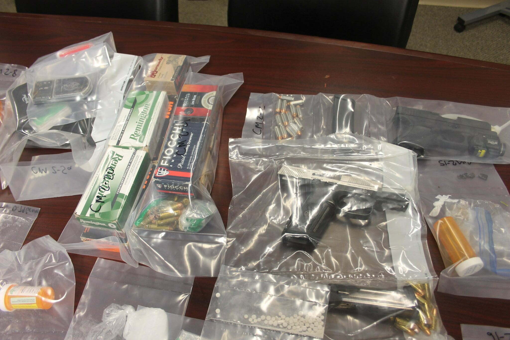During this search, Net-5 Agents located a Glock 4 10mm handgun, 15 round magazines, speed loaders for a 38-special handgun, a large amount of prescription pills not prescribed to Rodriguez, a large amount of Oxycodone Hydrochloride pills, and some stolen property.
