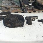 After the embers cooled, officers searched the vehicle and located three firearms. Additional charges related to the firearms will be sought against Eilgio, to include felon in possession of a firearm.”