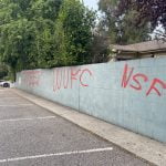 “Between August 23 – 25, a lone suspect vandalized 28 businesses and one private residence that were located on South Auburn Street, McKnight Way, and Freeman Lane in Grass Valley.These 29 locations were “tagged” with graffiti that included “CREED”, “NSF”, “FTC”. Most of the graffiti was about 6 feet wide. It is estimated that the cost of clean-up and/or replacement of damaged property will be thousands of dollars.