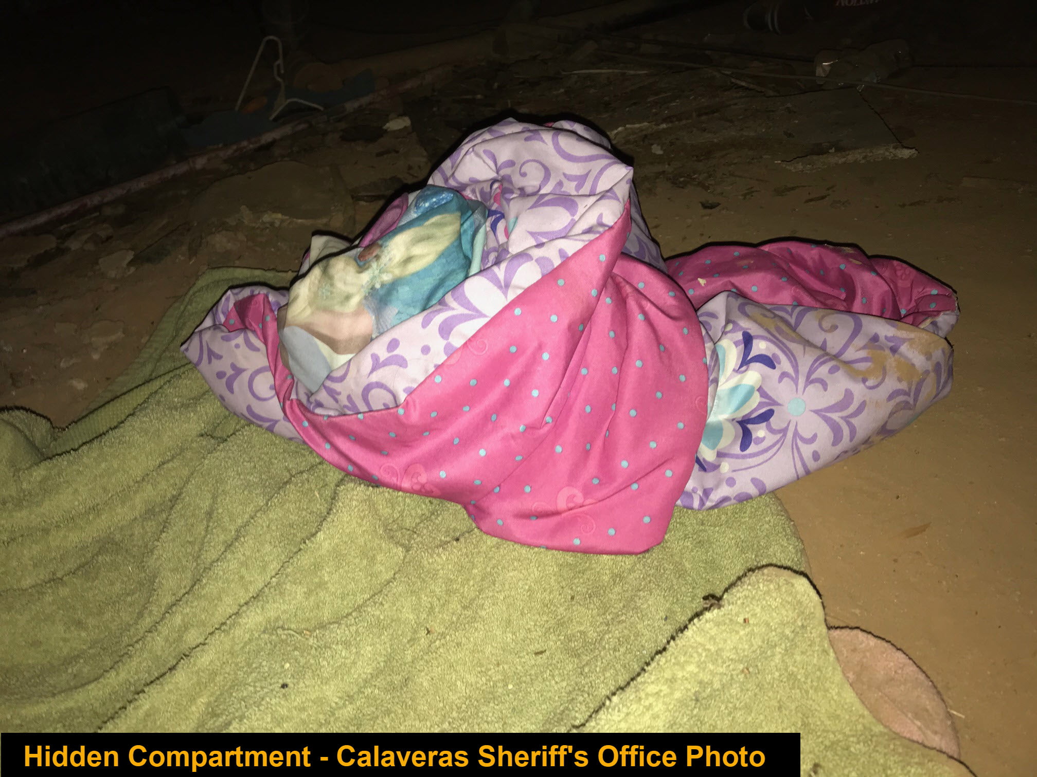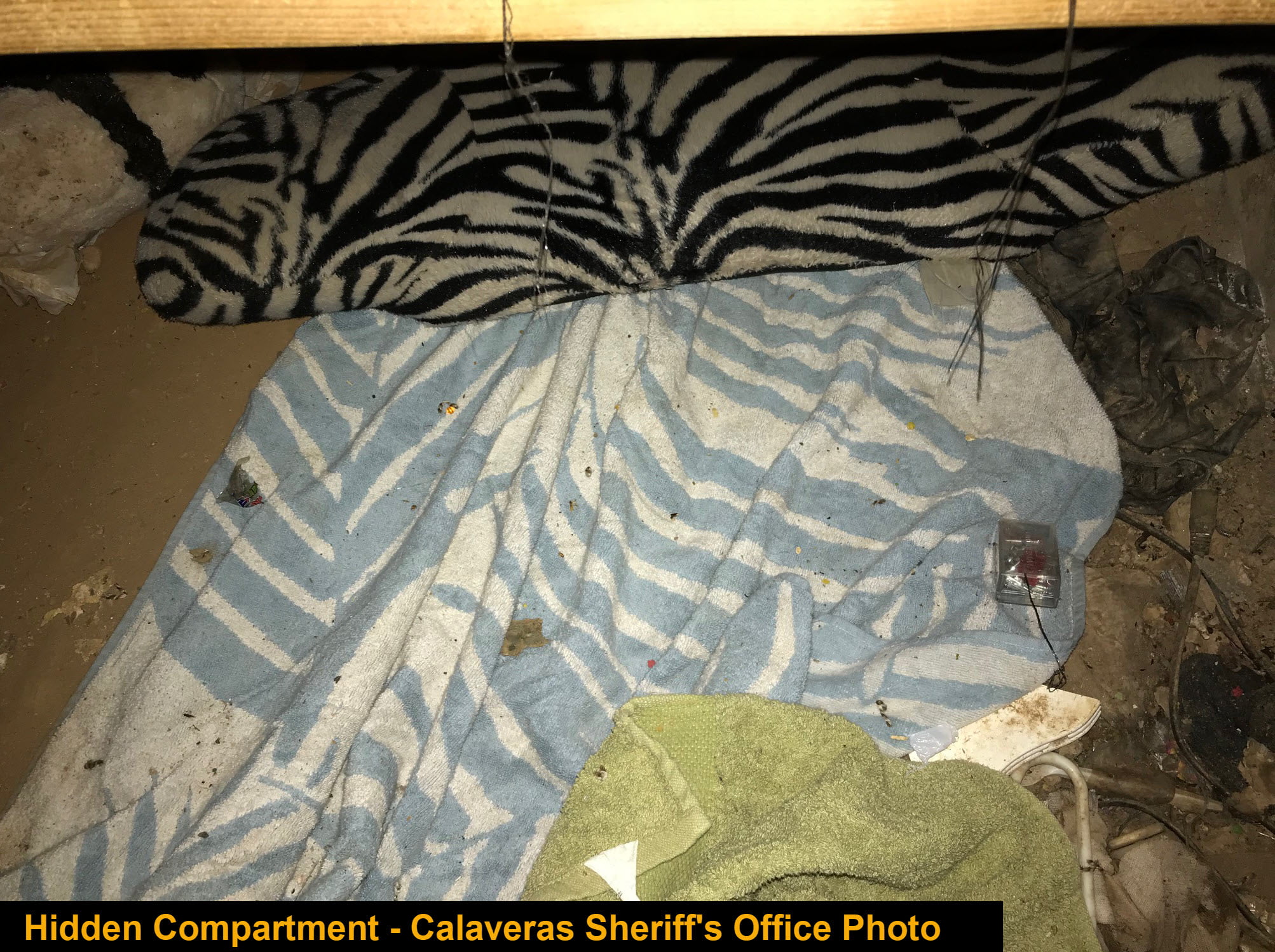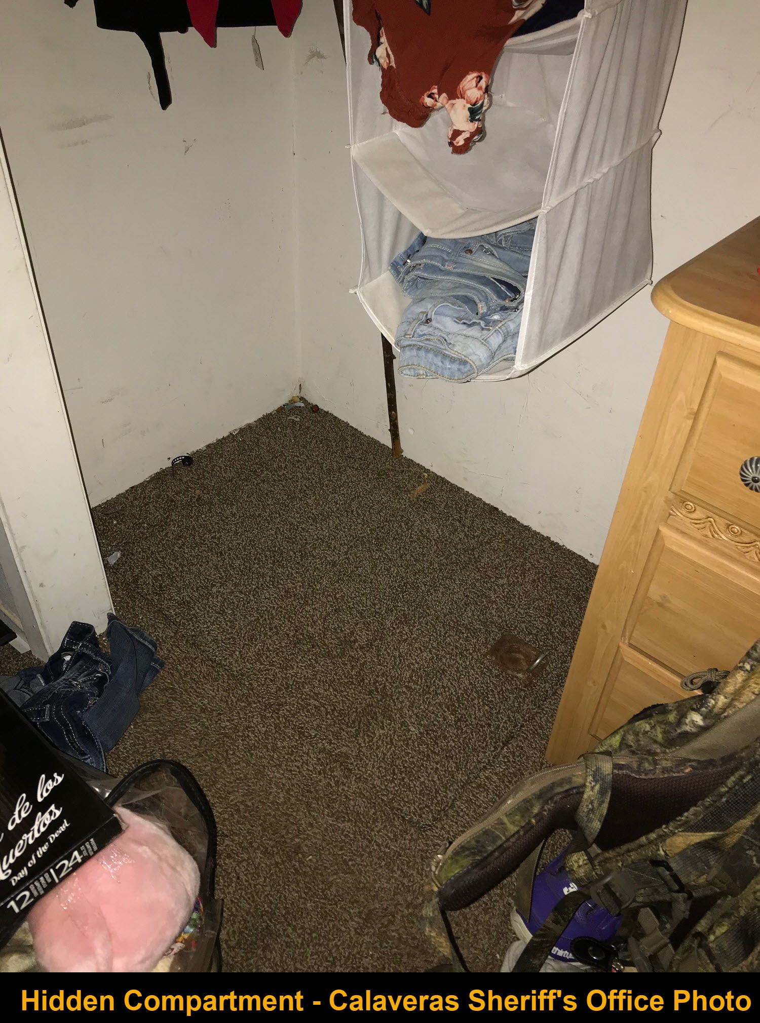 As they continued to search, detectives also found a trap door leading to a hidden makeshift “sleeping area” in the crawlspace of the house.