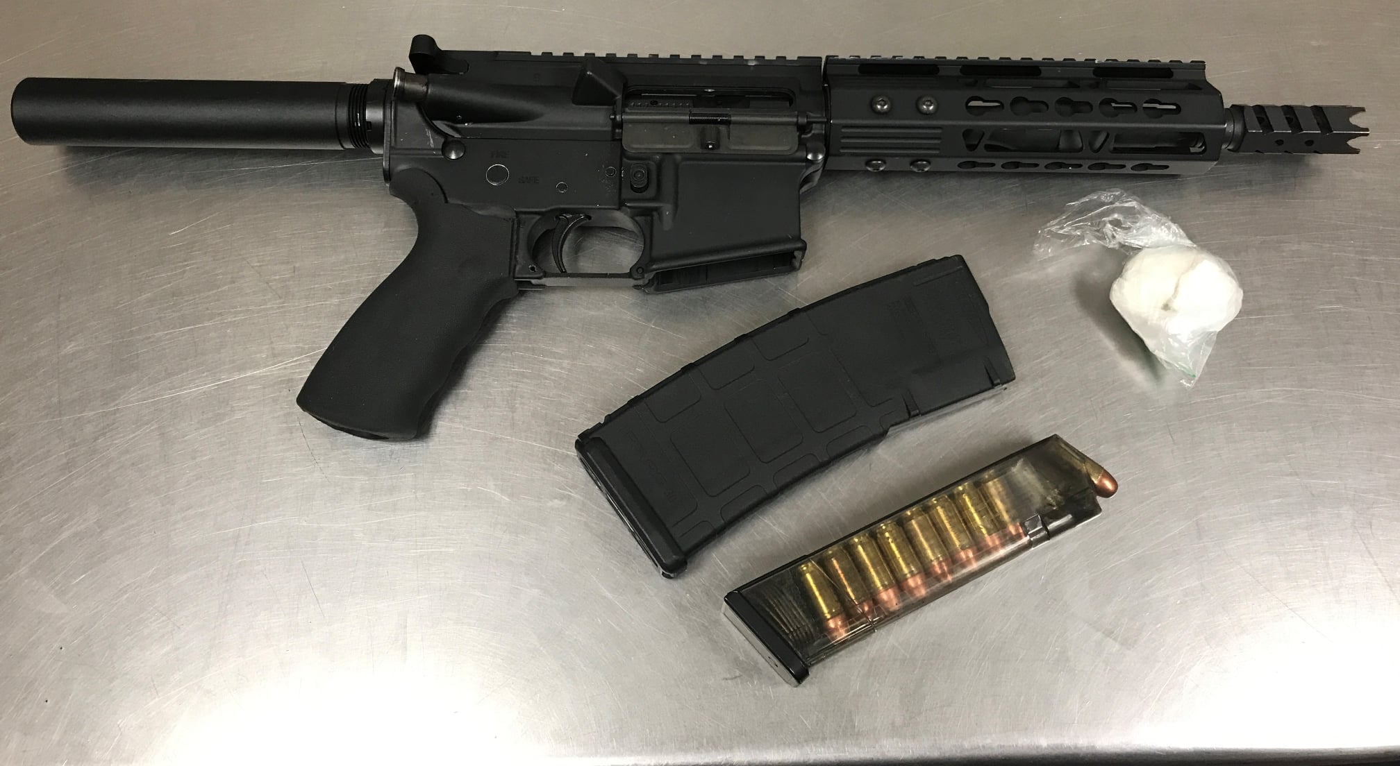 While searching Garibay’s vehicle, officers reportedly found a loaded AR pistol and a magazine for another handgun. A bag of narcotics he’d discarded during the pursuit was also recovered.