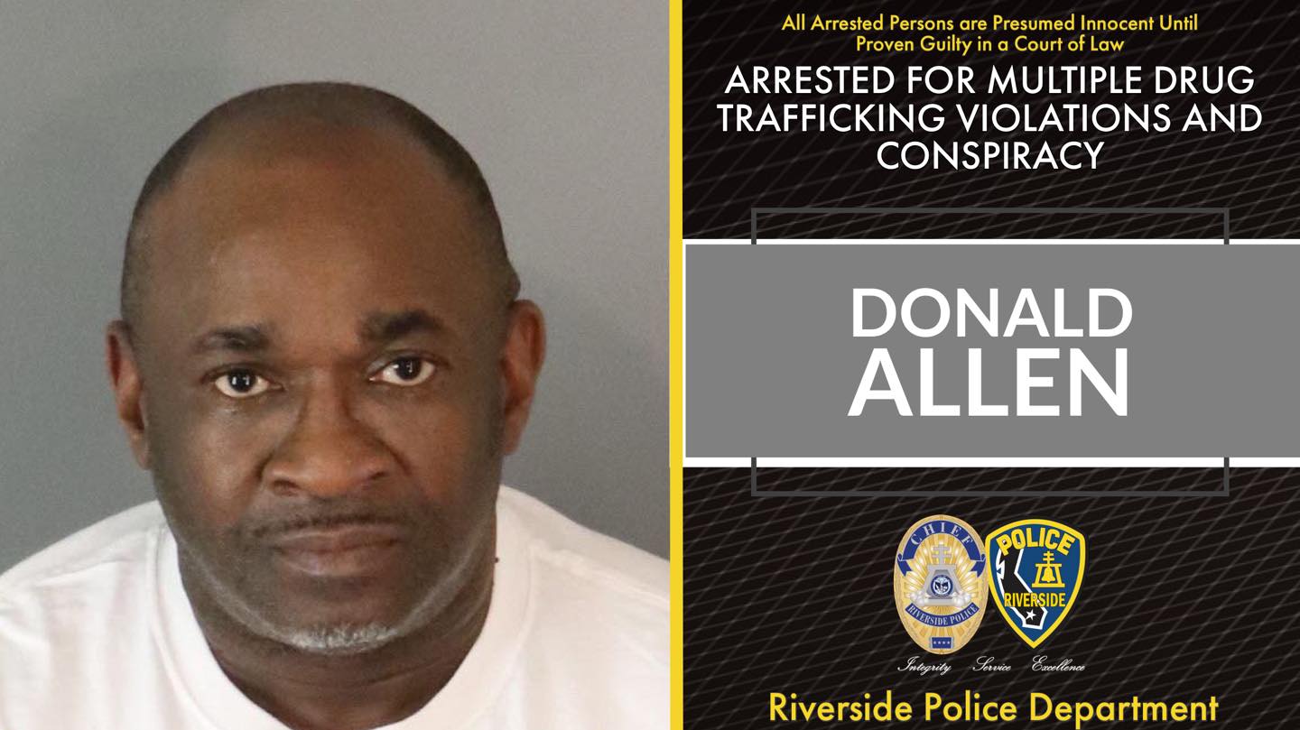 Donald Allen, 51-years-old of Menifee, was arrested and booked into jail for multiple drug trafficking violations. He is also being held on $500,000 bail. This suspect is known to use the names of Wade Nurse and Sean Ellis.