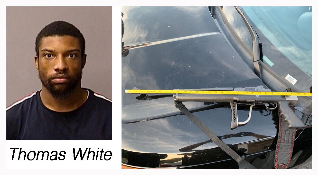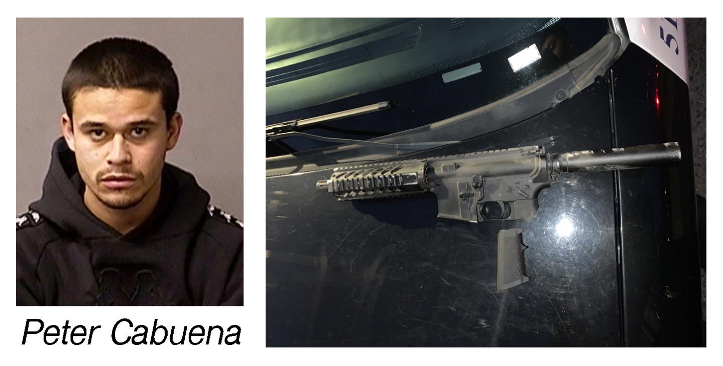 The passenger, twenty-year-old Peter Cabuena was arrested and charged with being a felon in possession of a firearm and an additional charge for manufacturing a short barrel gun.