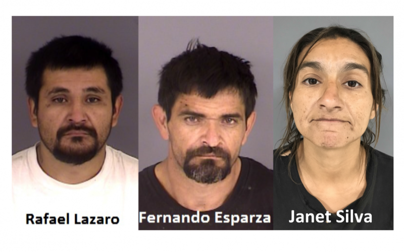 The three occupants — identified as Rafael Lazaro (29), Fernando Esparza (37), and Janet Silva (38) — were arrested and booked at the San Benito County Jail on a variety of charges.