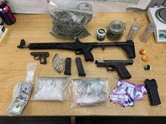 Following his arrest at the scene, a search of his residence lead to the discovery of additional controlled substances, and a mini-arsenal of illegal firearms. He was transported to Ventura County Jail, where he was booked on no less than 14 separate narcotics, weapons, and vehicular charges. He remains in custody with his bail set at $310,000.