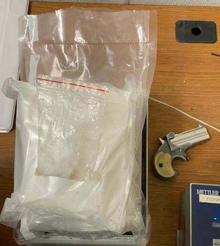 During their inspection, agents discovered three packages of suspected narcotics inside a red handbag behind the driver’s seat. The contents inside the packages tested positive for the characteristics of methamphetamine. Agents also discovered a Derringer 38 special handgun inside a black backpack located on the front passenger seat. Agents arrested the driver and her passengers and held him for further processing.
