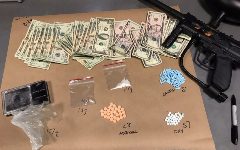 Numerous officers canvassed the area, looking for the suspects. A short time later, officers located a vehicle in the area of Peterson Lane and Firwood Av that matched the suspect vehicle. Officers detained all three occupants. On scene, officers located numerous prescription pills, suspected methamphetamine, a scale and cash. Based on witness statements and evidence located, all three suspects were arrested