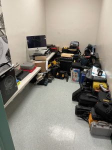 The stolen property recovered includes approximately 100 laptop computers. This is in addition to surveying and construction tools, cameras, gaming consoles, cell phones and other electronics.