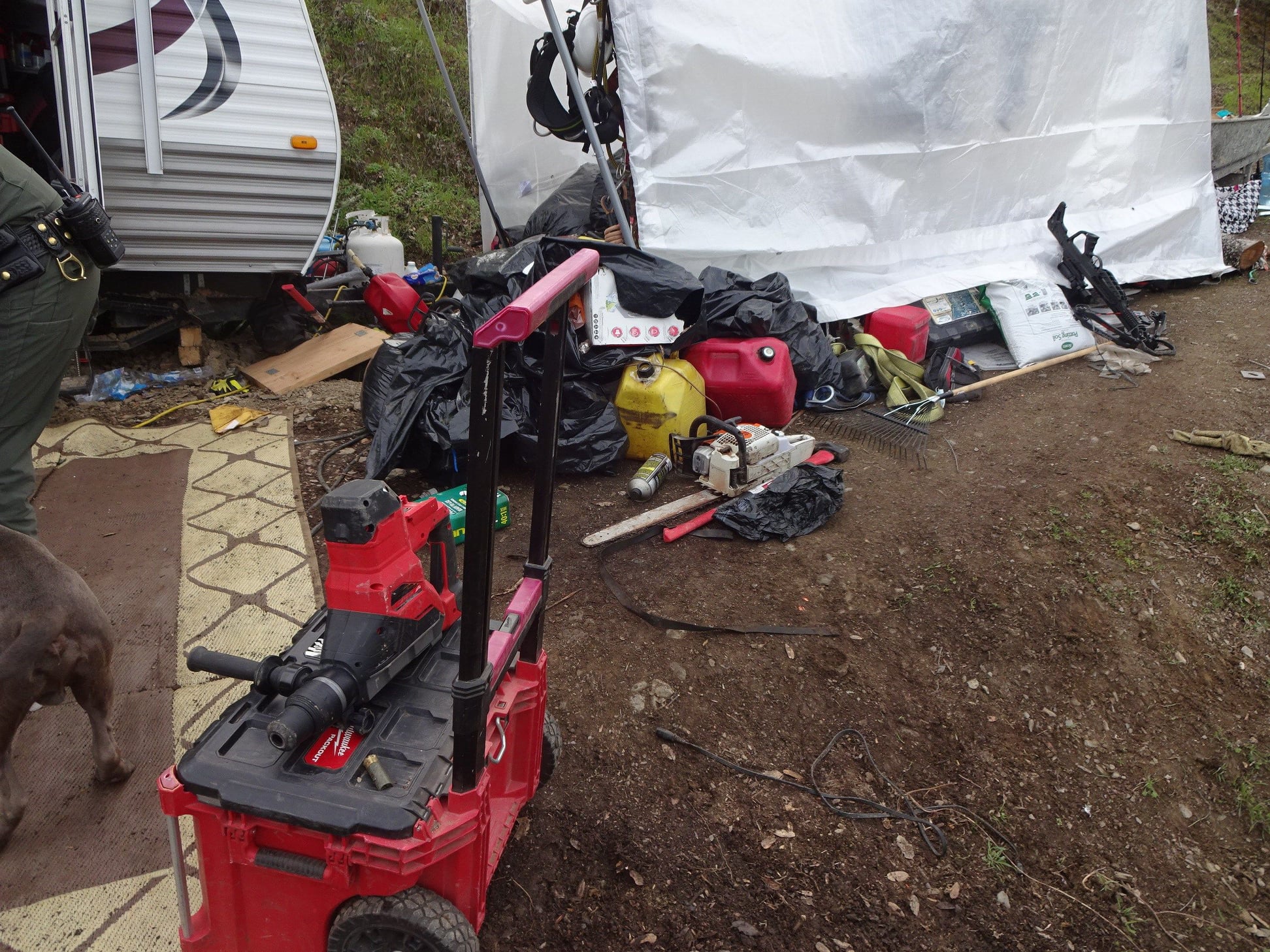 Deputies then conducted a search of the trailer and surrounding area, reportedly finding numerous tools allegedly stolen from the same victim. The victim later drove out to the property and, after positively identifying the items, was able to recover them.