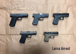 On April 22, 2021 at about 3:39 PM, officers conducted a vehicle code enforcement stop in the 1300 block of Mount Vernon Avenue. One of the vehicle occupants, Isaiah Leiva (22) of Rosamond, was found in possession of multiple unregistered and un-serialized firearms. Tools commonly used to assemble firearms were also located in the vehicle. Leiva was arrested and booked for charges related to manufacturing unconventional and undetectable firearms.