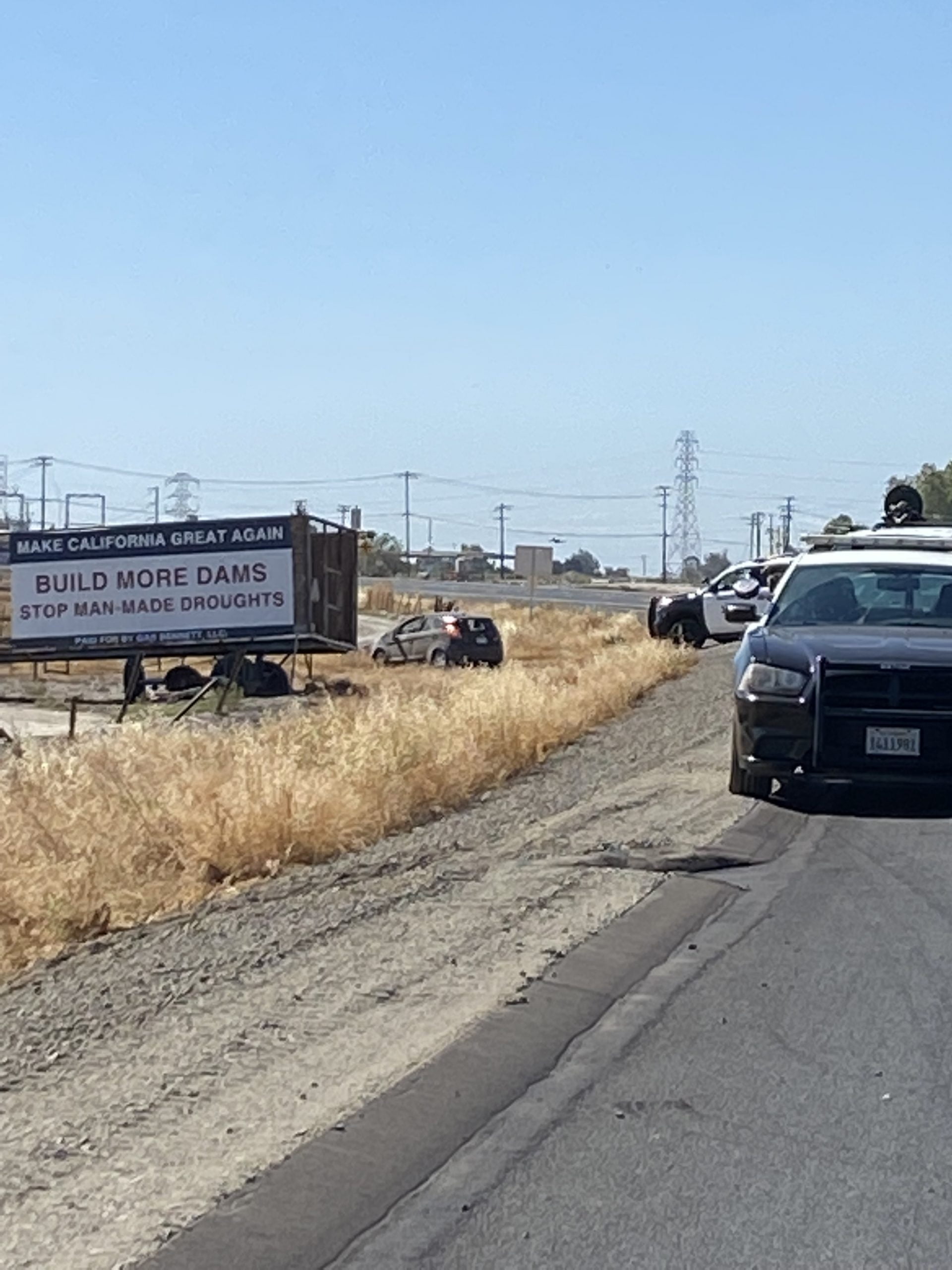 As Hernandez entered the city of Corcoran, a CHP officer deployed additional Stop Sticks, this time blowing out Hernandez’s remaining three tires. Authorities say Hernandez continued driving on the rims and made it back to State Route 43, this time heading north. Eventually, however, he lost control of the vehicle and ended up in a dirt field along 43 between Whitley and Orange Avenues.