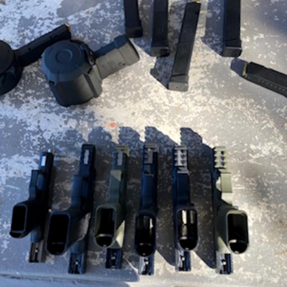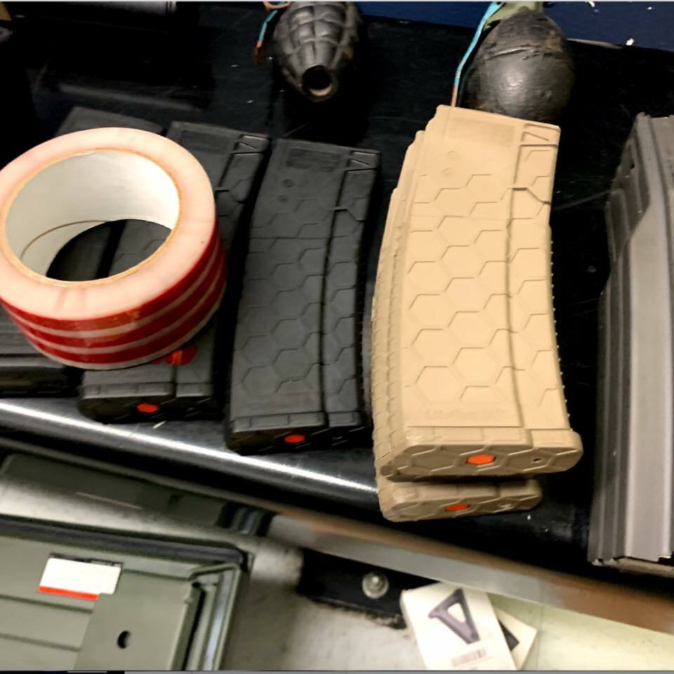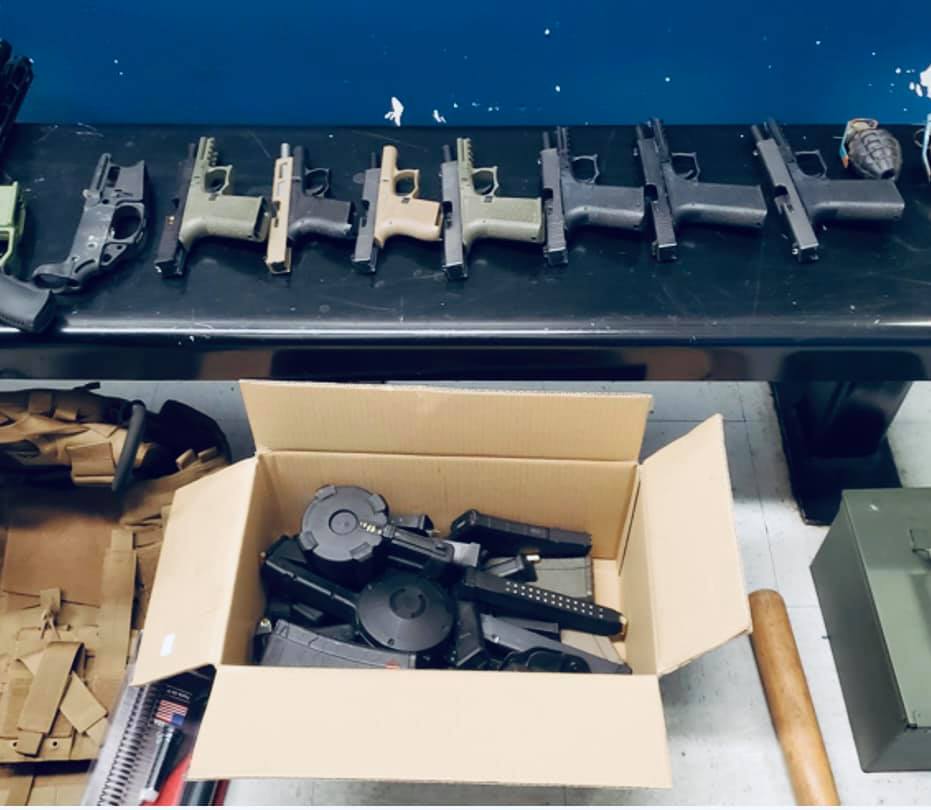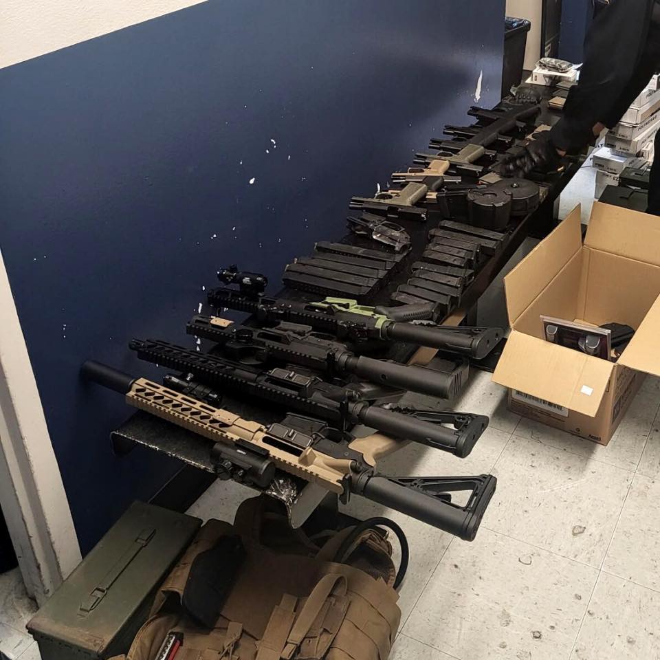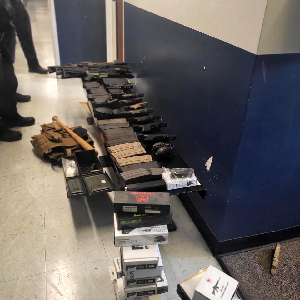 The discovery yielded a total of: 8 unregistered handguns, 6 unregistered assault rifles, 2 inert grenades, 700 total rounds of 40 caliber, 9 millimeter and .223 armor piercing ammunition, 17 high capacity magazines, 3 drum magazines, a suppressor and a ballistic vest.