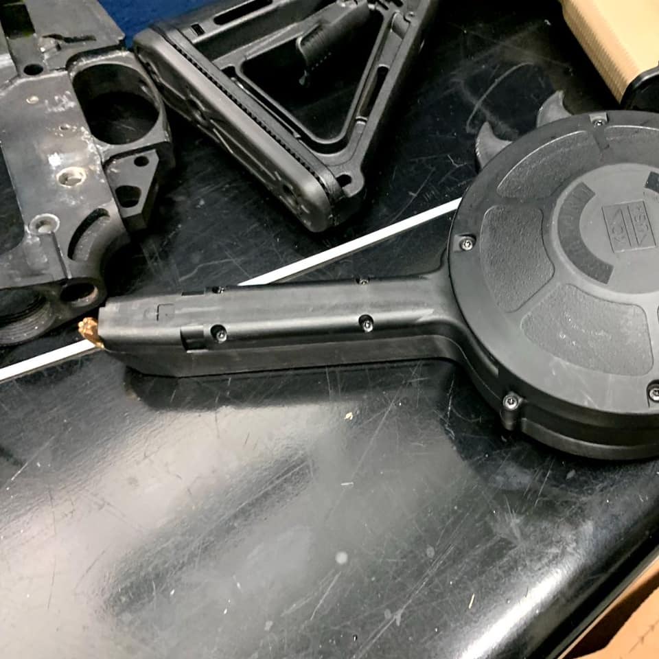 Upon arrival, officers located the suspects and victim in front of the residence. Officers conducted a protective sweep of the suspects’ residence and discovered several illegal assault rifles in plain view. Following the application and receipt of a search warrant (granted by judge), a thorough search of the residence led to the discovery of multiple non-serialized AR-15 type assault rifles, drum magazines, pistols and other firearms.