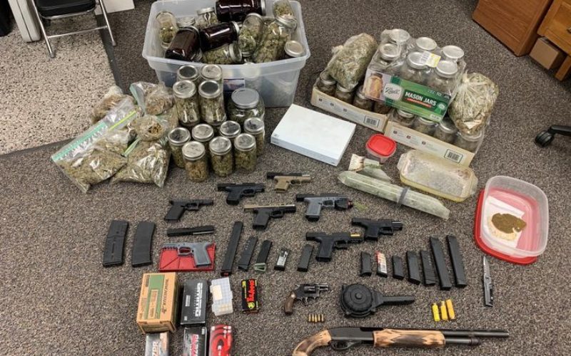 A search of the Woodville home was conducted and evidence of an operating Butane Honey Oil (BHO) lab was found, as well as about 105 pounds of processed marijuana, 9 illegal guns and several illegal firearm magazines.