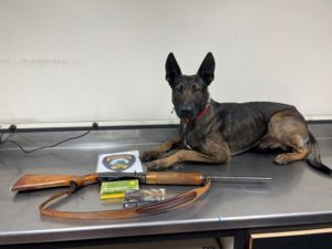 Officer Tucker Zazueta and his canine partner “Zeke” searched the home for evidence related to the crime. The canine alerted and found a .308 semi-automatic rifle and ammunition underneath Guevara’s bed.