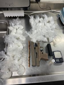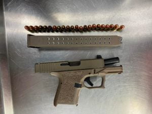 After the occupants stepped out of the car, deputies searched it and reportedly found a ghost gun and a high-capacity magazine containing rounds of 9mm ammunition.