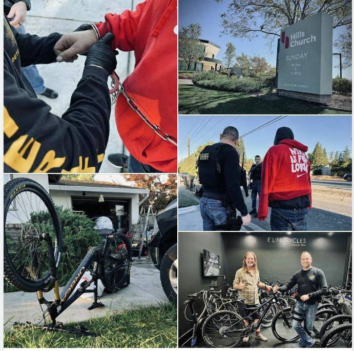 Within days following his release, the suspect returned to El Dorado County and committed additional crimes, then returned to Sacramento. Detectives would later execute searches at two locations within Sacramento County that lead to recovered evidence for additional burglaries in El Dorado Hills, to include a local bicycle shop. Detectives also located a stolen vehicle which was recovered at the scene. The charges for the two individuals consisted of burglary, grand theft, conspiracy and possession of machine gun. The majority of the investigative leads produced for this case were from high quality surveillance systems.”