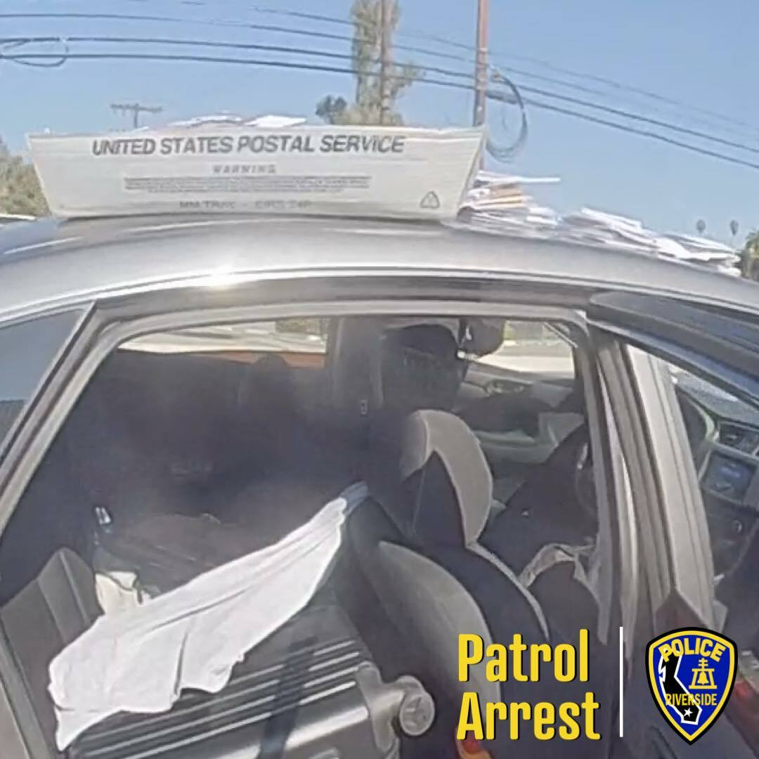 31-year-old Pierce Adriaanse of Riverside was reportedly arrested after residents in the Wood Streets area of Riverside noticed a man behaving suspiciously, as well as what appeared to be a large amount of mail stashed in the trunk of his car.