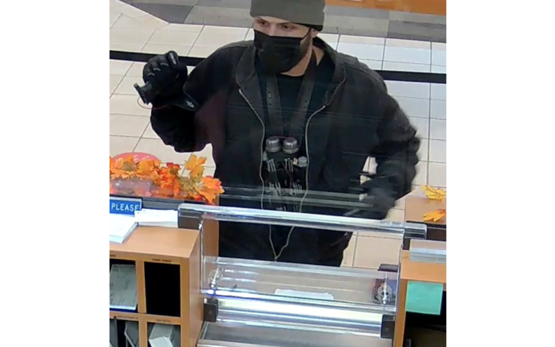 Above: Bank surveillance image of robbery suspect with replica bomb | Photos courtesy of Citrus Heights PD
