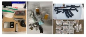 In addition to the arrests 11 firearms were confiscated including 3 ghost (unserialized) guns, 32 pounds of Methamphetamine, 1.42 pounds of Fentanyl laced oxycodone pills, and more than 2 pounds of cocaine.