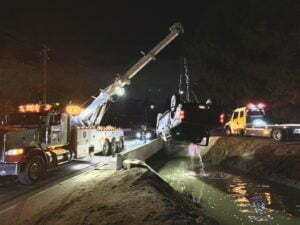 Above: Lopez’s truck after it landed in the canal | Photos courtesy of Clovis PD