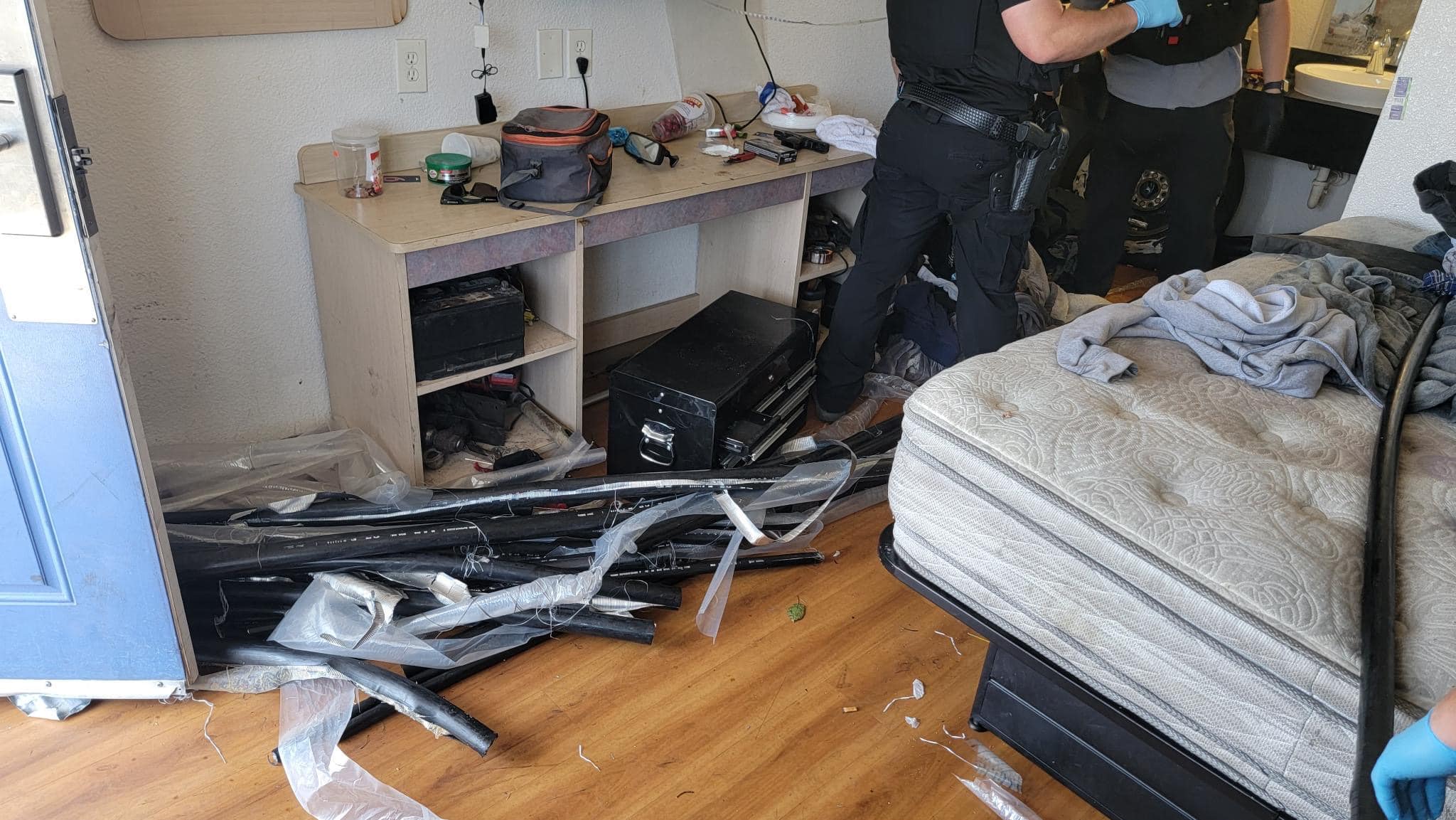 The driver, Francisco Mendez, was found to have a felony warrant for auto theft and was on his Own Recognizance (O.R.) pending that matter when he committed more crimes. CRU Deputies continued their investigation and learned where he was staying, conducted a search and discovered more stolen wire, drug paraphernalia, weapons, and other instruments to further his crimes.