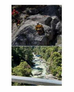 Swiftwater trained SAR members used a safety line to descend to the river’s edge where they used additional safety lines, and downstream safeties to enter the water and recover the woman. Once the woman was out of the water, CHP helicopter H40 assisted by hoisting the woman to the bridge where the TCSO coroner was able to continue their investigation.