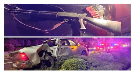 The dangerous pursuit continued eastbound on Twelve Bridges until it came to a dramatic halt when the suspect’s vehicle collided with a tree in the Lincoln Sun City area. Despite the impact, the driver remained defiant, sitting alone in the vehicle with a loaded shotgun on his lap.
