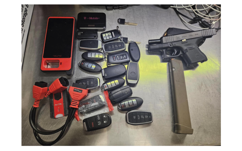 The group of people Officer Smith observed was detained. In their possession were multiple key fobs, a key programmer, and a loaded handgun with an extended magazine. One of the keys started the stolen vehicle.