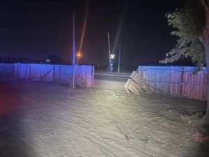 The Deputy briefly lost sight of the Mersedes and suddenly saw a large cloud of dust billowing into the air in the 14500 block of Hanford-Armona Road. Kiera had driven through a 6-foot-tall picket fence and into the front yard of a residence. The Deputy pulled up behind the Mercedes and saw that both front doors were open with no one inside.