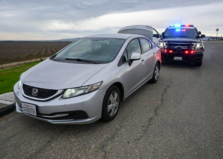 On Wednesday, Jan. 31, 2024, at 2:50 p.m., a Central Valley CHP K-9 sergeant conducted an enforcement stop on a 2013 Honda Civic for a traffic violation. The stop occurred on northbound I-5 at Russell Avenue. During the contact, the sergeant determined the driver was unlicensed. While conducting a vehicle inventory prior to impounding the Honda, the sergeant located approximately 20 pounds of crystal methamphetamine inside a plastic tote within the trunk compartment of the Honda.