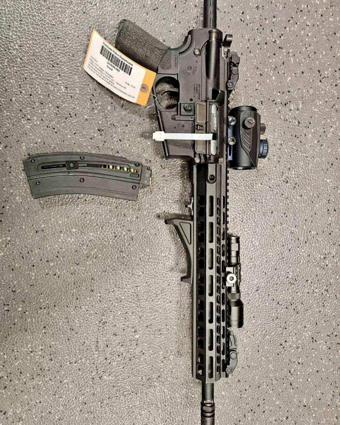When questioned about the incident the driver accidentally revealed that he was currently in possession of additional firearms in his vehicle. Officer Dang located two illegally modified assault style rifles inside the car and one was loaded. He was also in possession of three high-capacity magazines, ammunition and firearms accessories. The driver was placed under arrest and charged with two counts of PC 30605(a) – Unlawful possession of an assault rifle, PC 25850(a) – Carry a loaded firearm in a public place, and PC 32310(c) – Possession of high-capacity magazines.