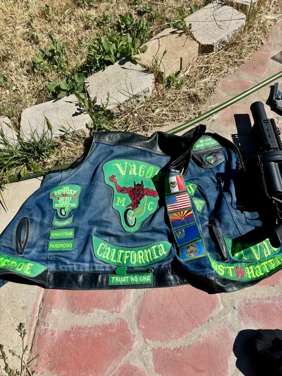 Deputies conducted a post-release community supervision search at a residence on Dawn Avenue in connection with the operation, and reportedly confiscated a firearm hidden in a Vagos vest, a second firearm hidden in a motorcycle, a fully automatic machine gun, and a 40 MM launcher.