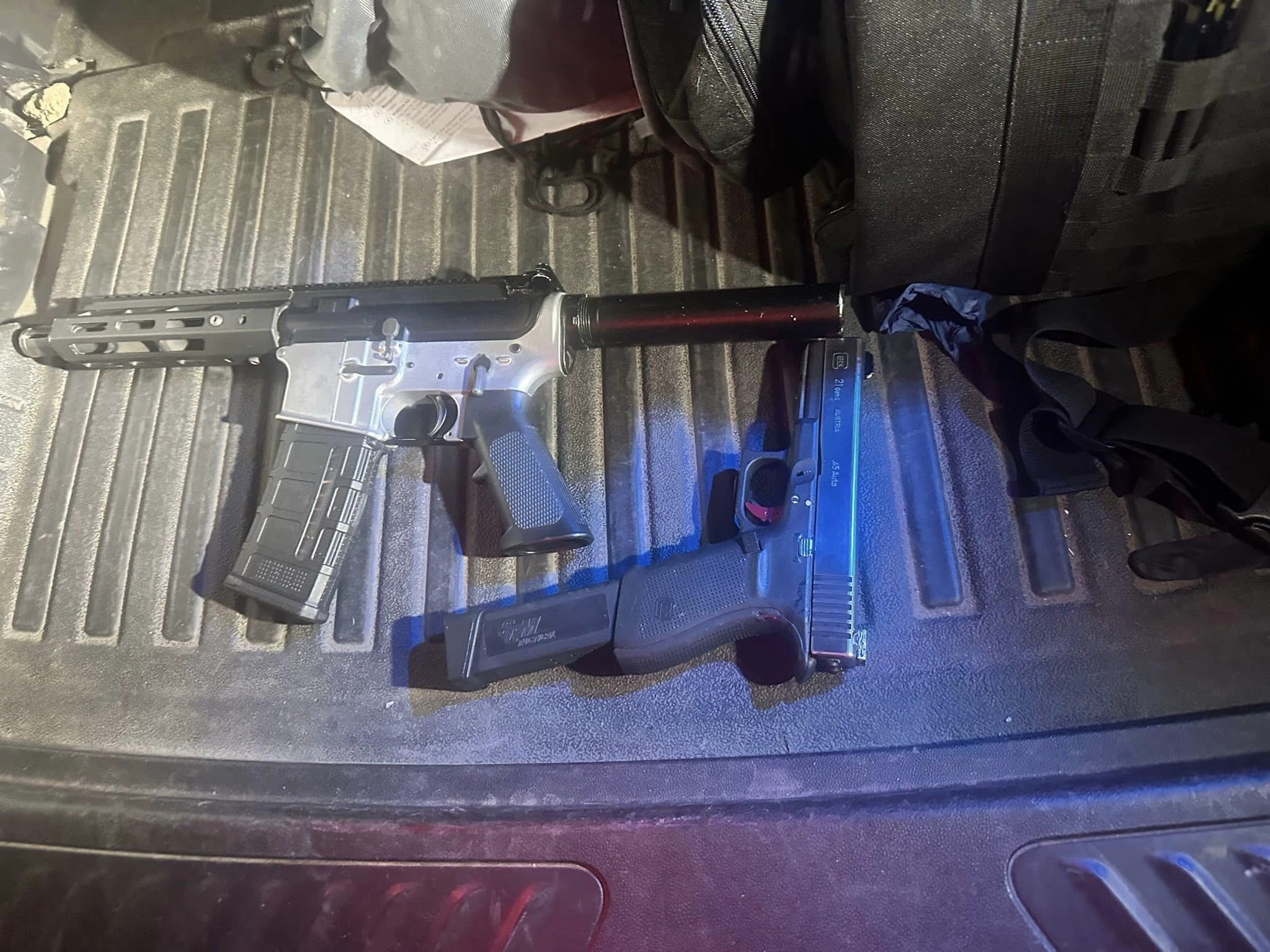 Deputies also searched the suspect vehicle and seized an AR-Style rifle and a handgun. Deputies allegedly found another handgun located just outside the vehicle.