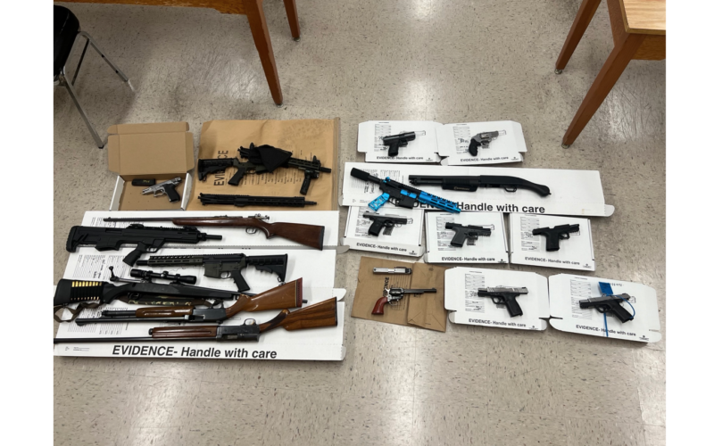 During the search, detectives reportedly confiscated several firearms, ammunition, and substances suspected to be narcotics intended for sale.