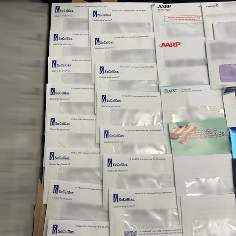 Despite both suspects being dishonest with our officer, consent to search the residence of the female subject was obtained. While inside the female subjects residence, our officer located 2 bags that were filled with mail that all had addresses that belonged to the city of Placentia. The female subject commented that the 2 bags did not belong to her and that her boyfriend (male subject) had brought the 2 bags into her residence. Our officer showed the female subject the pictures from the video taken at the crime scene of the vehicle (hers) with a female in the drivers seat. She admitted that it was her in the photo, despite earlier having stated to our officer that she was never in the city of Placentia that day.