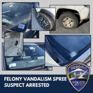 REDDING, CA — “The Redding Police Department has arrested a suspect following a series of felony vandalisms that caused significant damage to multiple businesses and public properties.