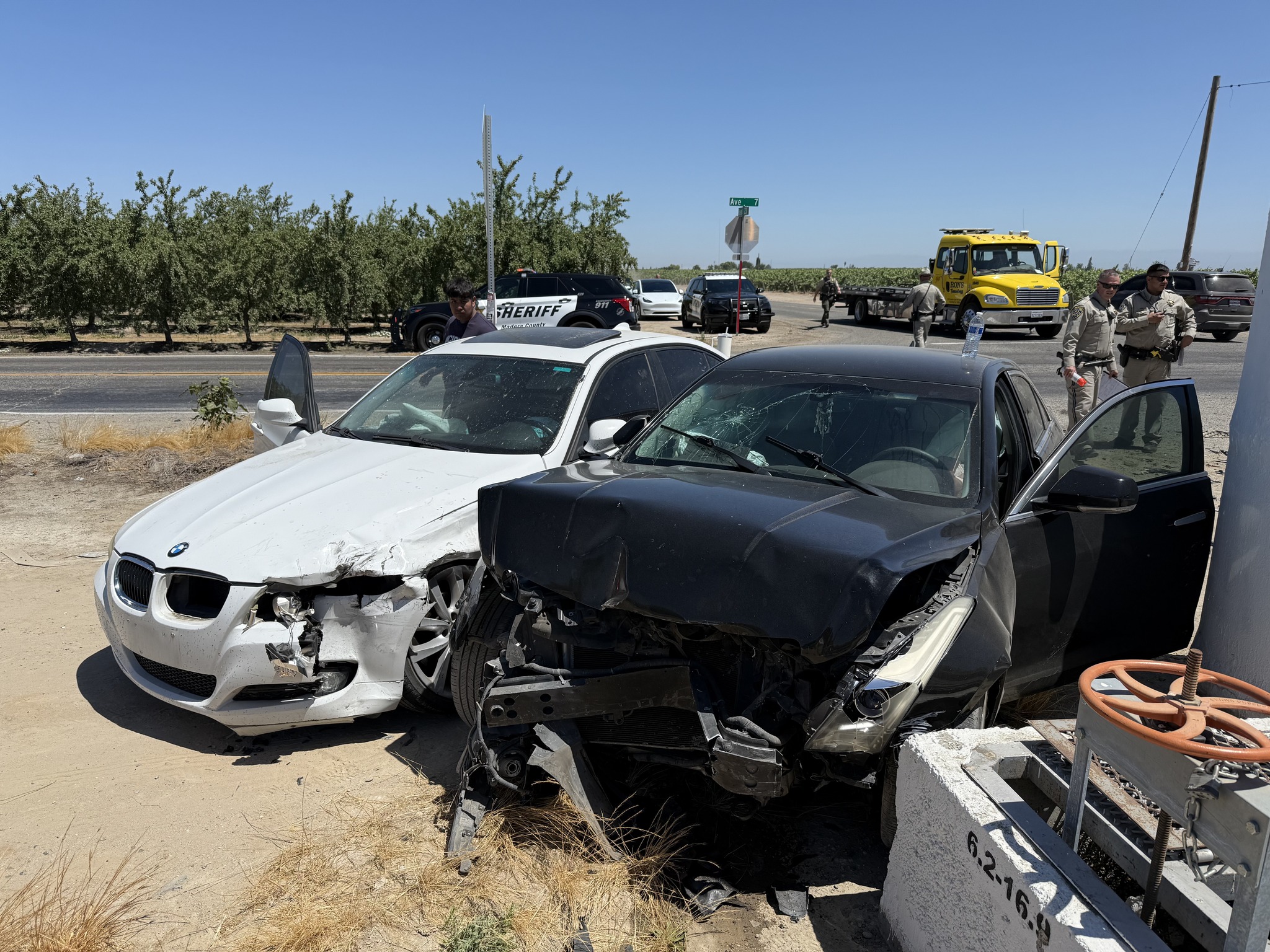 Deputies tried to pin in the vehicle a short time later, but Sanchez crashed into the vehicles and took off at a high rate of speed. Deputies saw at that time there were young children in the vehicle and were not chasing it. He eventually crashed into another vehicle at the intersection of Avenue 7 and Road 23. That vehicle was driven by a woman who had two small children inside her car.