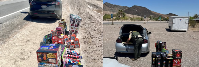 INYO COUNTY, CA — ”On Friday, June 13th, deputies from the Inyo County Sheriff’s Office Tecopa-Shoshone Station, in partnership with the Bureau of Land Management (BLM) Barstow Office, conducted traffic stops resulting in the seizure of approximately 874 pounds of illegal fireworks. This effort highlights the dangers posed by illegal fireworks, which can cause serious injuries, property damage, and wildfires.