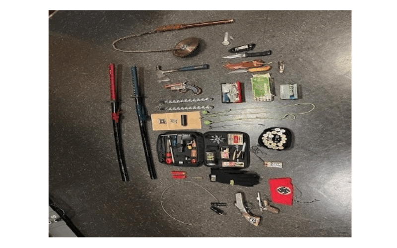 Upon search of the residence, some of the items Officers recovered were spent shotgun shells, nunchakus, a variety of knives, ammunition for both handguns and shotguns, multiple firearm weapon parts, makeshift weapons, and suspected fentanyl.