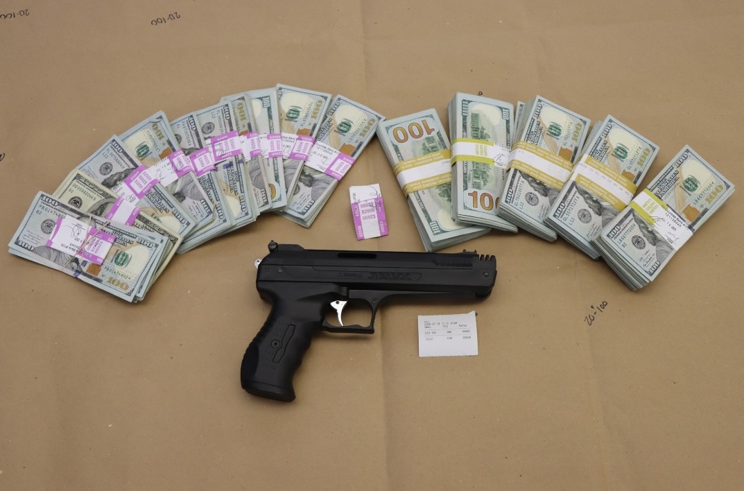 With assistance from the Dinuba Police Department, the suspect vehicle was located in Dinuba and found to be driven by Roman Espino, 37, a resident of Kingsburg, CA. Investigators served search warrants at residences associated with Espino in both Dinuba and Kingsburg, as well as on the vehicle he was driving. A large amount of cash bundled with Tri-Counties Bank currency bands was recovered, along with a pellet pistol.