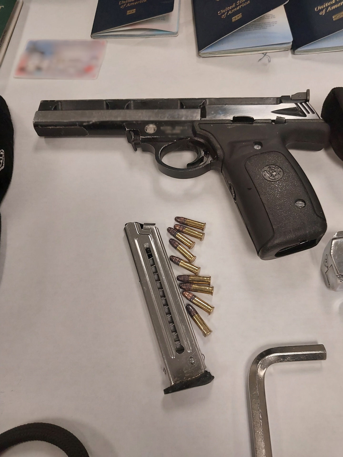 Once on scene, they found the suspects, who had rented a room under a fake name. Both were arrested — one with an active warrant out of Los Angeles. 👀 Inside the vehicle and room, officers recovered two firearms, stolen personal information, drug paraphernalia, and the undamaged vehicle itself!