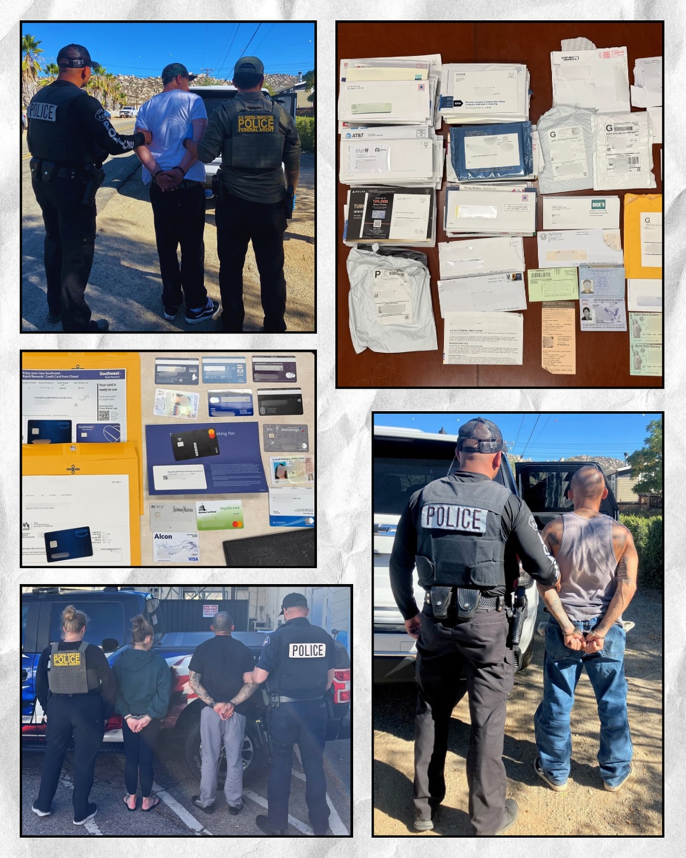 #MurrietaPD #MenifeePD #RiversideCountySheriff #USPIS #FinancialCrimesTaskForce #MailTheft #IdentityTheft #CommunitySafety”