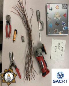 Jones was arrested and booked into the Sacramento County Main Jail on multiple felony and misdemeanor charges, including copper theft, damaging railroad property, vandalism, possession of burglary tools, and trespassing on RT property.