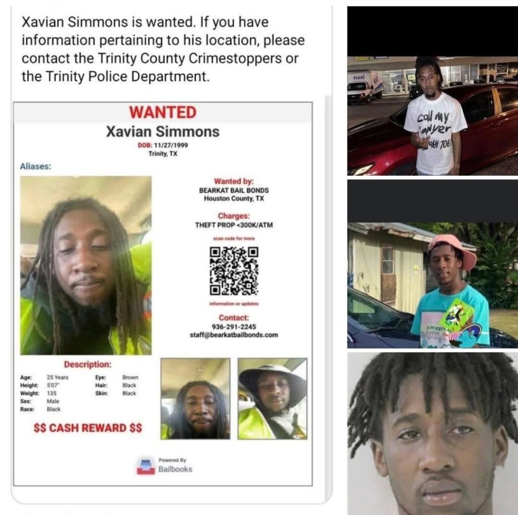 “The Trinity County Sheriff’s Office is requesting the public’s assistance in locating Xavian Simmons, who is currently wanted in connection with an outstanding matter.
