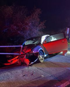 The San Luis Obispo Police Department has reported an arrest following a single-vehicle traffic collision that occurred Sunday night on Orcutt Road. According to department officials, a vehicle traveled off the roadway and struck a railing situated above a creek culvert, just past the intersection of Laurel Lane.