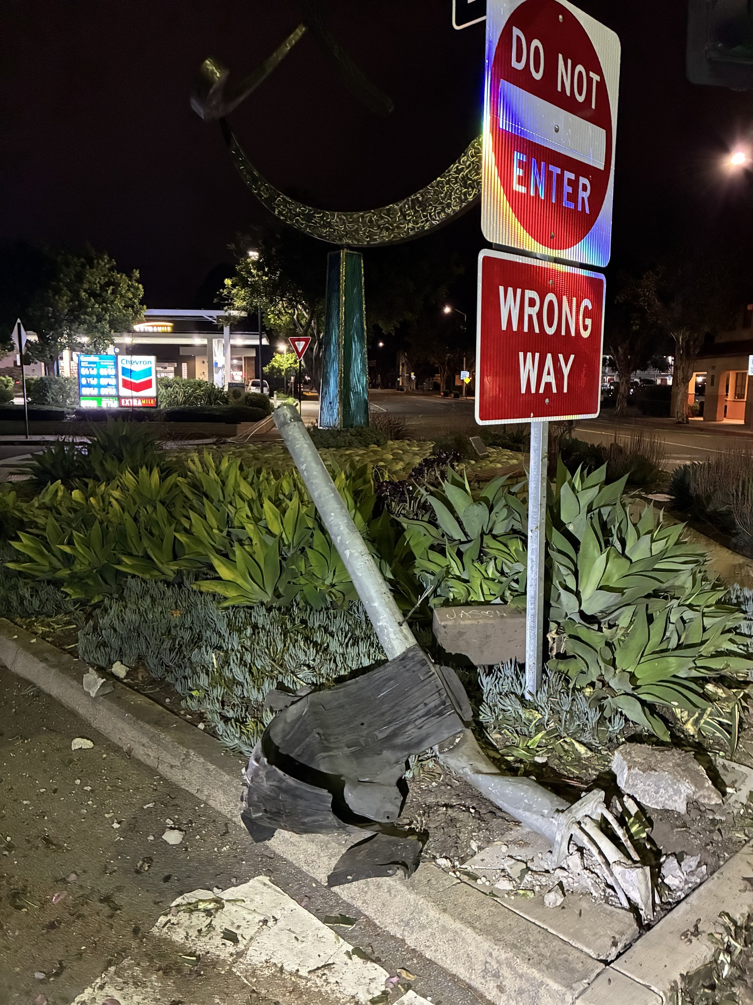 Physical evidence found along Higuera Street indicated the vehicle had been traveling northbound against the one-way flow of traffic. Investigators determined the car likely rolled over after striking a utility pole. An open bottle of vodka was observed on the vehicle’s dashboard.